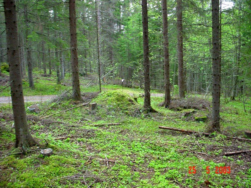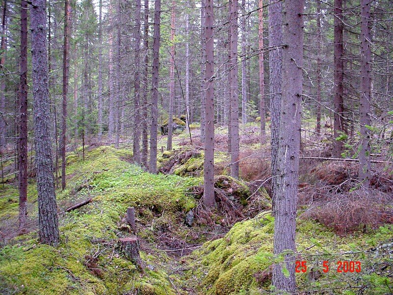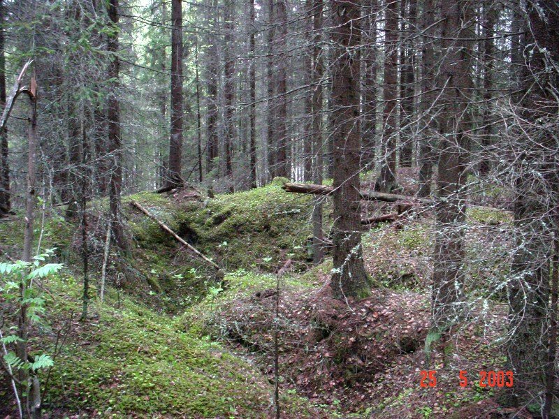 tukikohta. Juoksuhauta on hyvin säilynyt koskemattomana metsässä.