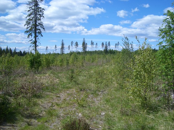 Likolammen asuinpaikka kuvattuna etelään, harjanteen laen eteläpäässä..