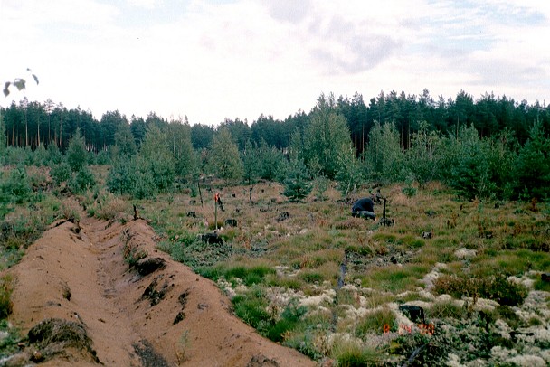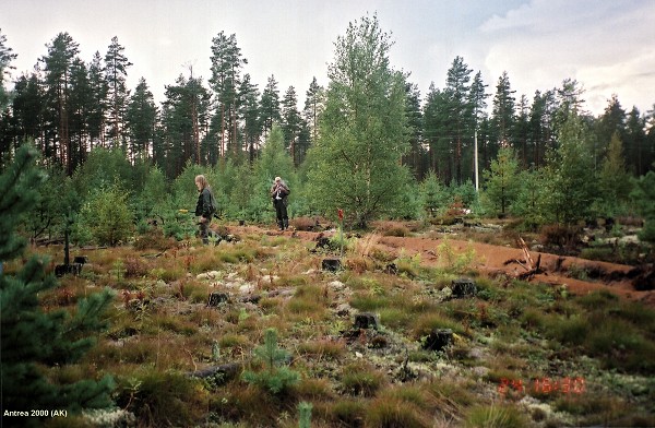 Kuvattu länteen. Rostedt ja Jussila "toukoilevat" asuinpaikalla (kuva A Kriiska).