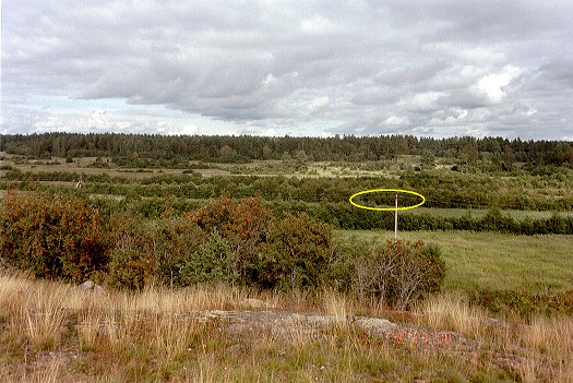Verkonlöytöpaikka kuvattuna itään (koilliseen) Sorinkallion eteläosan laelta.