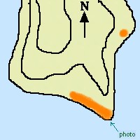 alakuvassa jäävät selän taakse. Alakuva päin vastaisesta suunnasta kuin yläkuva. Paikan on löytänyt Pekka Tarkiainen v. 1995, tarkastanut Matti Huurre 1995, Antti Bilund 1996, Timo Jussila 1996. Opaste T Jussila 2000. |