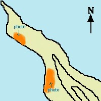 | Paikalla on opastauluja. Ylemmässä kuvassa niemen tyven asuinpaikkaa, jossa on asumuspainanteita. Alakuvassa niemen kärjen asuinpaikkaa ja ja komea asumuspainanne, josta Pöljän keramiikkaa. Paikka on löytynyt Museoviraston inventoinnissa v. 1982 (T.Jussila). |