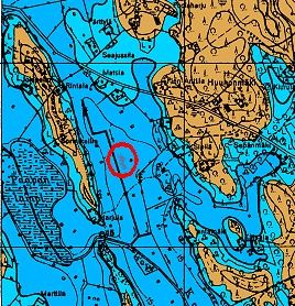 aikana, jolloin vesi oli nousemassa ja ehkä n. 26 m korkeustasolla (viereisessä kartassa vesi 25 m korkeudella).