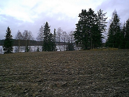 Löydöt pellosta kuvan keskeltä. Kuvattu tieltä pohjoiseen.