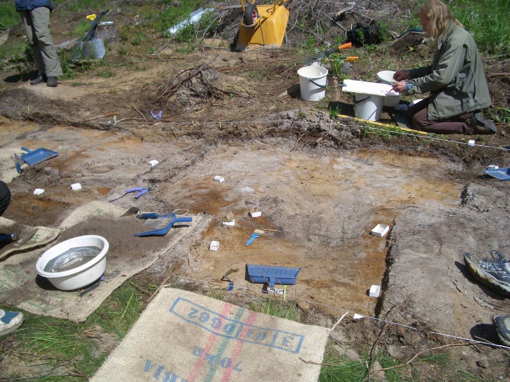Kaivajat laittavat löydöt pieniin laatikoihin, jotka asetetaan löytöpaikkoihin. Arkeologit kirjoittavat paikkojen koordinaatit ylös.