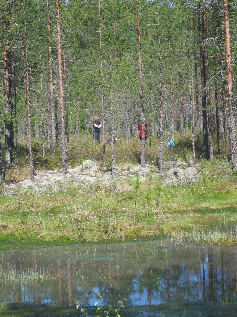 13:21 9.6.2005 Siitepölynäytteet otettiin läheltä suolampea. Kun asuinpaikalla on asuttu, näytteenottopaikalla on ollut pieni järvi. Ilmassa lentänyt siitepöly kerrostui järven pohjaan ja säilyi turvekerroksessa ja sen alla järven kuivuttua ja muututtua suoksi. Siitepölynäytteestä voidaan nähdä alueen silloinen kasvillisuus ja sen perusteella voidaan päätellä, millainen ilmasto alueella on vallinnut. |