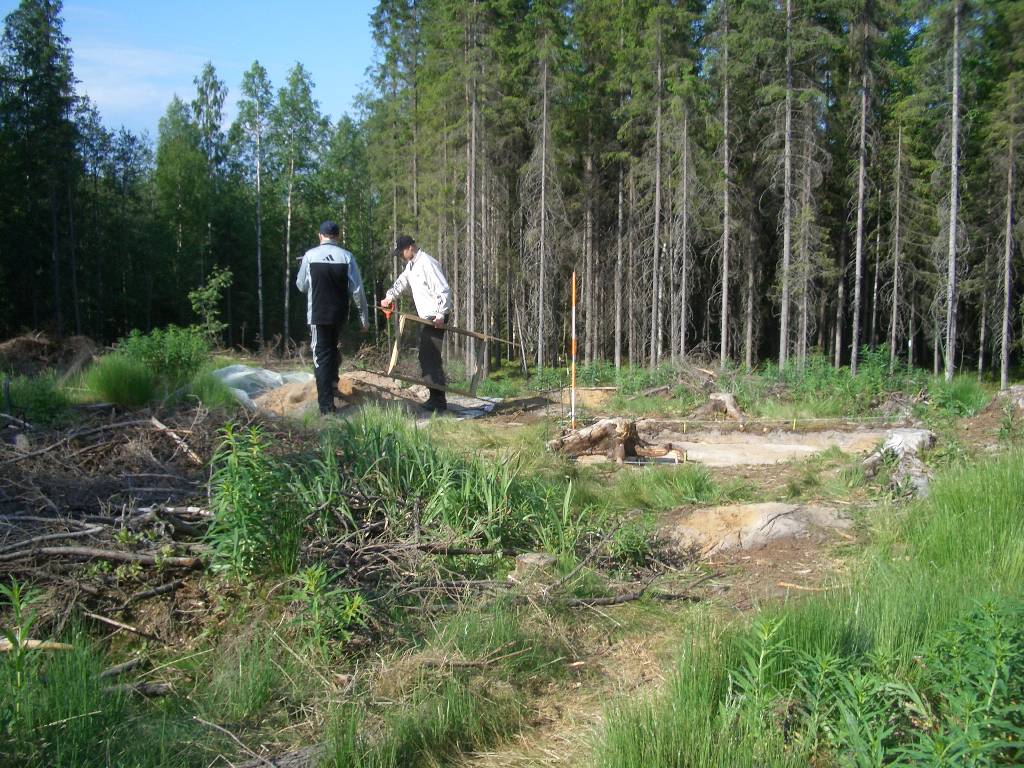 Nyt myös pienellä kaivausalueella siivilöidään maata ämpärillinen kerrallaan.