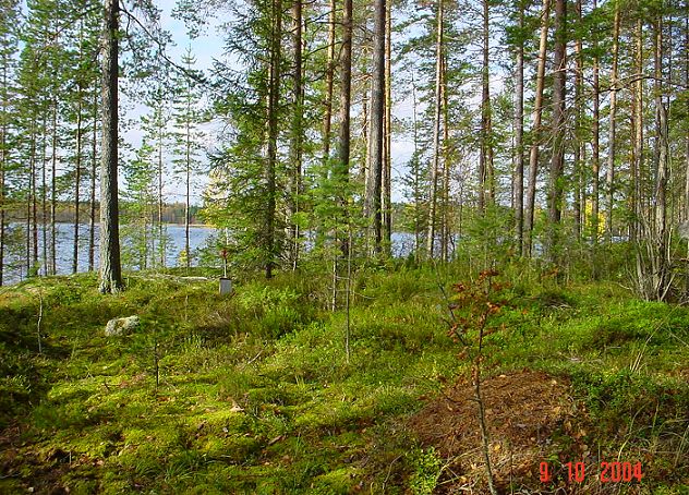 Ala-Viivajärven asuinpaikka löytyi äestetystä metsämaasta. Kuvaan on merkitty löytöalueen rajat punaisella viivalla. Ala-Viivajärvi jää vasemmalle.