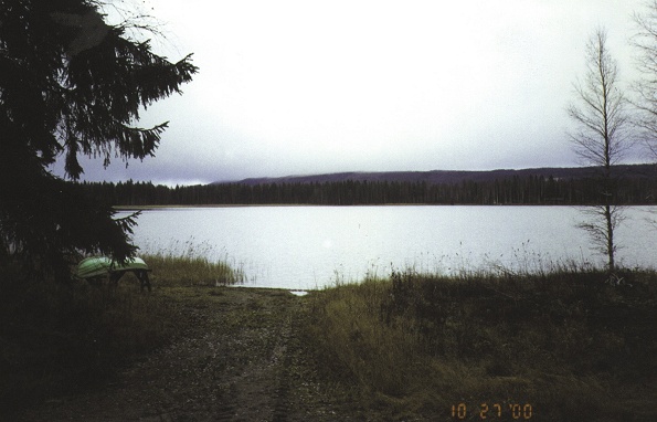 Kinahmin pohjoispää pilviharson peitossa. Kuvattu Kauppisen lounaispäästä koilliseen (27.10.2000).