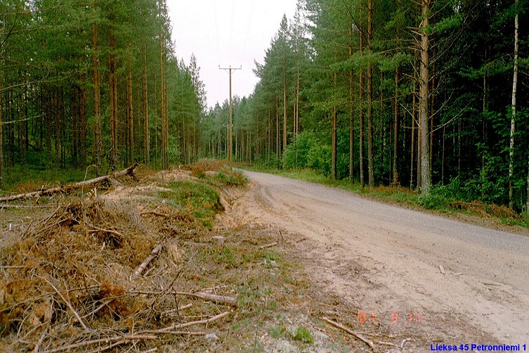 Kuvattu luoteeseen löytöpaikasta 1 . Löytöjä kuvalalalla olevan tien pinnasta. Oikealla hiekkakuoppa.