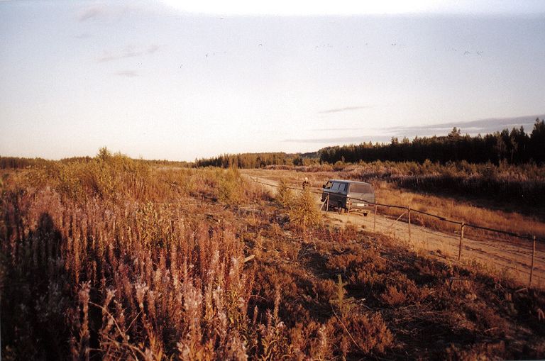Kuvattu ilta-auringon hämyssä luoteeseen. Luukeskittymä auton kohdalla ja edessä.