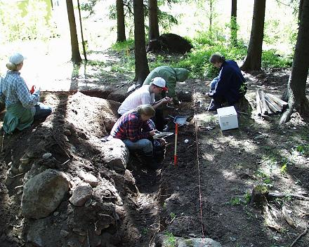 Pääkaivausalueella kaivetaan ensimmäistä 30 cm leveätä pohjoisprofiilia. .