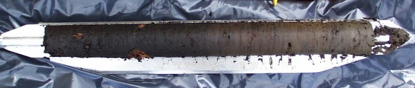 Alla: Kairanäytesarja 50-150 cm syvyysväliltä. Ylinnä 50-100 cm (turvetta-liejua) Alinna 100-150 cm (liejua-savea = baltian jääjärven glasiaalisavea) |