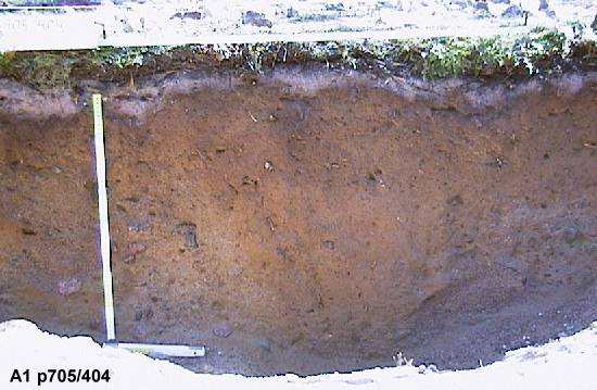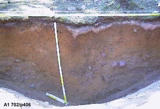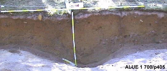 Likamaakuoppia alueen 1 itäprofiilissa. Kuopat ovat säilytys, makki tai jätekuoppia (tai sitten jotain muuta). Niissä on "rasvaista" maata, hiiltä ja luun muruja. Kolmas eli alin kuva on pohjoispäädystä.