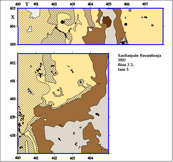 Alue 2 ja 3, TASO 5, karttapiirros, vaaituskartta ja -tiedot
