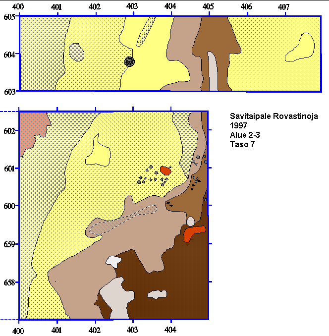 Alue 2 ja 3, TASO 7, karttapiirros, vaaituskartta ja -tiedot