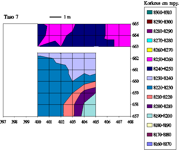 Taso 7 syvyys mineraalimaan pinnasta cm