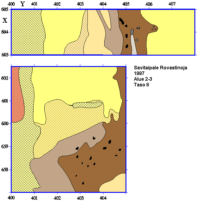 Alue 2 ja 3, TASO 8, karttapiirros, vaaituskartta ja -tiedot