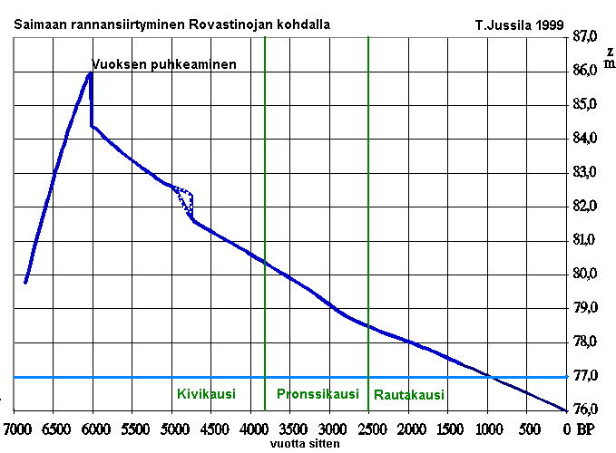 Rannansiirtymiskäyrä perustuu T Jussilan Helsingin Yliopiston arkeologian laitokselle tekemään opinnäytteeseen: The Shoreline Displacement Dating of Prehistoric Dwelling Sites in Iso-Saimaa. Työ kuului osana Arkeologian laitoksen Saimaa-hankkeeseen.
