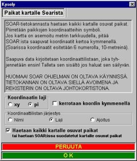 aukeaa Kartta-Soarissa kyselyikkuna, jossa - samoin kuin edelleä - kerrotaan