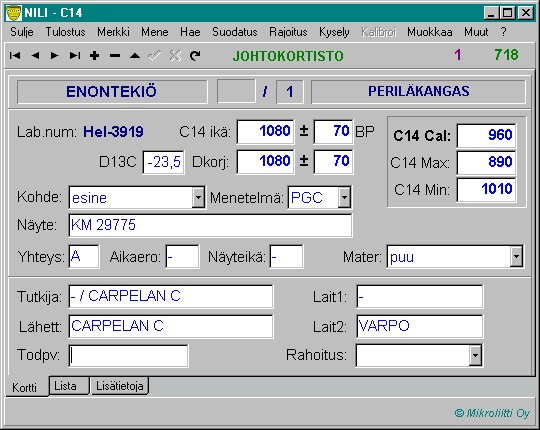 Kuva 4 b. - C14-kortin lisätieto-osion monitorinäkymä.