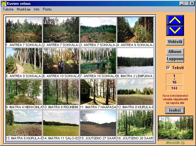 Valokuvia (kuten karttoja ja löydönkuvia) voi selata kuvalistana: