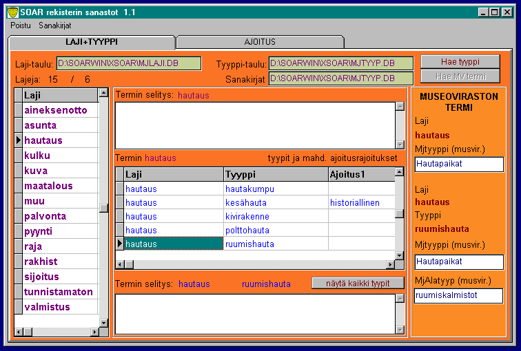 Erillisellä sanasto-ohjelmalla voidaan laatia ja hallita tietokannan termejä.