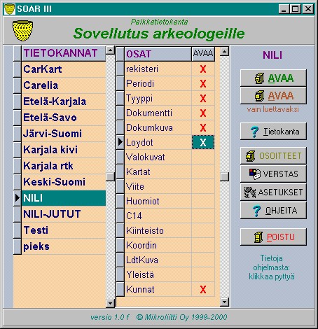 Dos-Soar (ver.7; viimeinen versio v. 1995) tietokantaan ja ohjelmistoon.