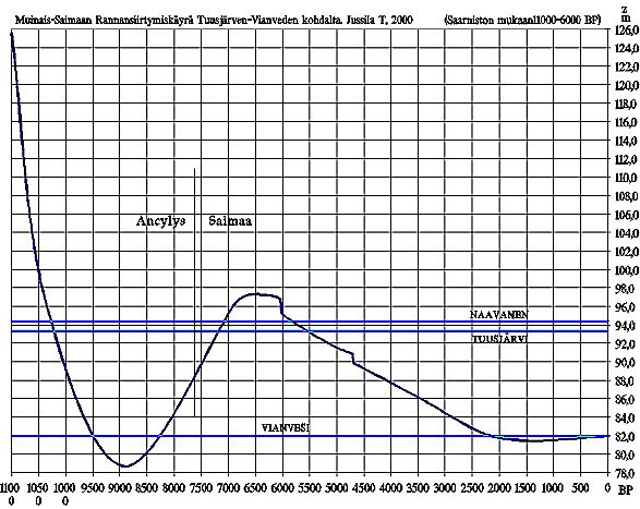 Tuusjärven alueen Itämeren/Saimaan rannansiirtymiskäyrä.
