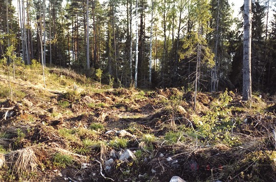 Asuinpaikka rinteen juurella Haavan ympärillä ja sen takana. Kuvattu lounaaseen, rannan suuntaan.